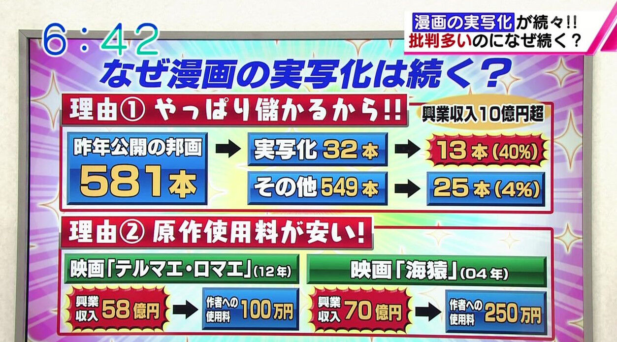 漫画の実写化ってこんなにも原作者にお金入らないのか・・・