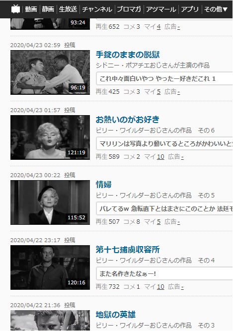 【画像】ニコ動の映画違法アップロード、「古典名作ブーム」へ突入するwwww