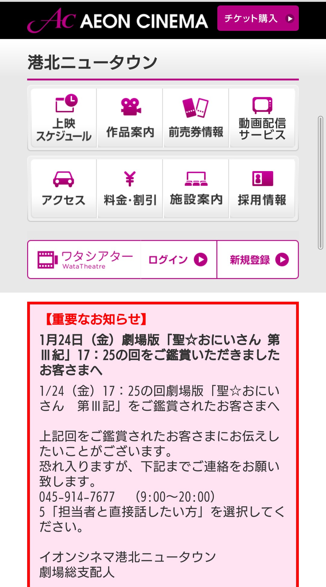 【画像】イオンシネマ、とある映画を鑑賞した客に重要なお知らせ「お伝えしたいことがあります」