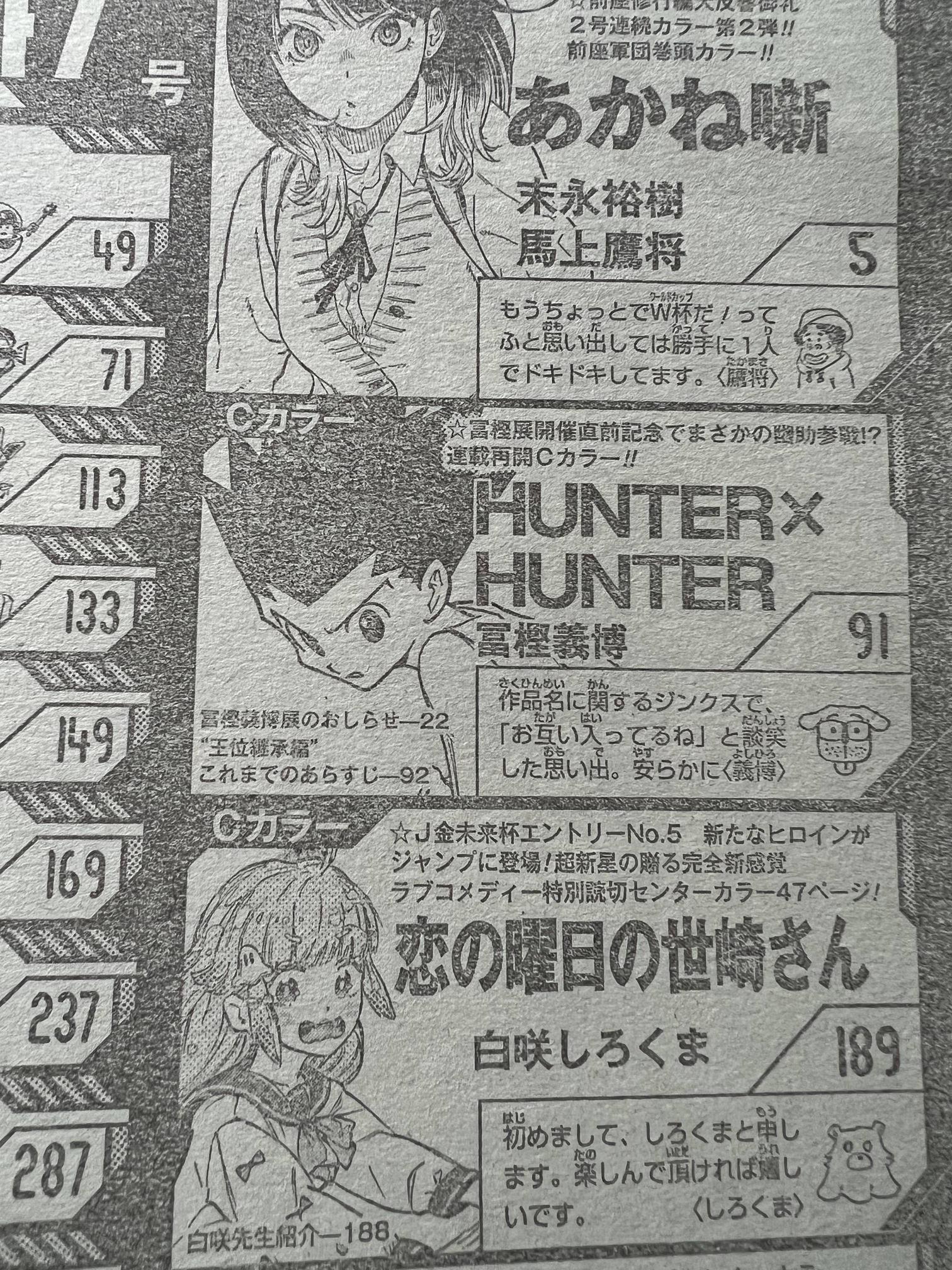【悲報】ハンターハンターさん、満を持して連載再開するも表紙を飾れないwwww