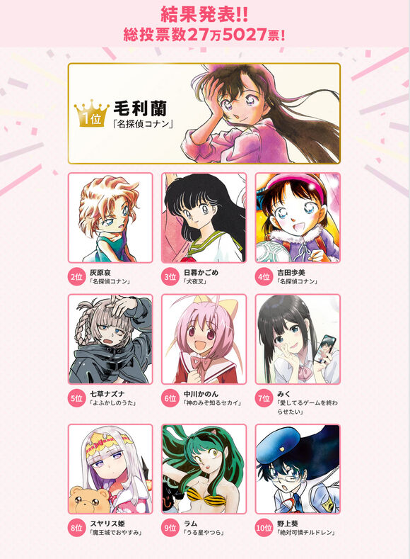 【画像】少年サンデーヒロイン総選挙、結果発表 !!