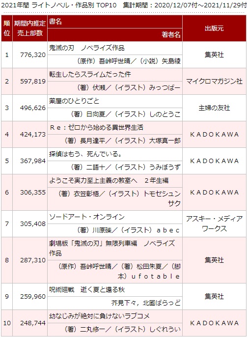 2021年に『1番売れたラノベ』が判明!やはりあの作品か・・・
