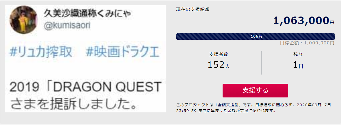 【朗報】ドラクエ映画にパクられ告訴していた小説家さん、無事裁判資金が集まる