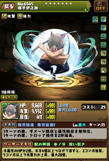 【パズドラ鬼滅の刃】嘴平伊之助の能力公開!スキルと武器つえー!