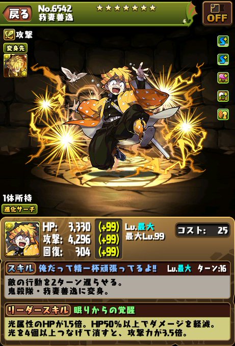 【パズドラ鬼滅の刃】我妻善逸の能力公開!攻撃力がパズドラ界の圧倒的トップにwwwwwwwww