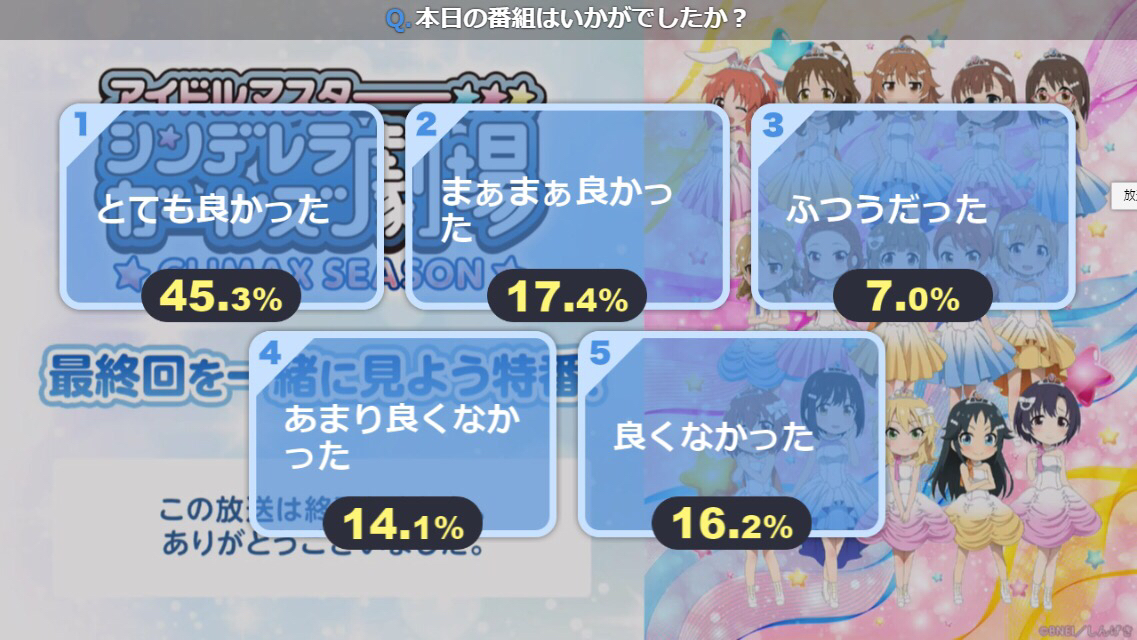 【悲報】デレマスのニコ生、悲惨なアンケート結果になる
