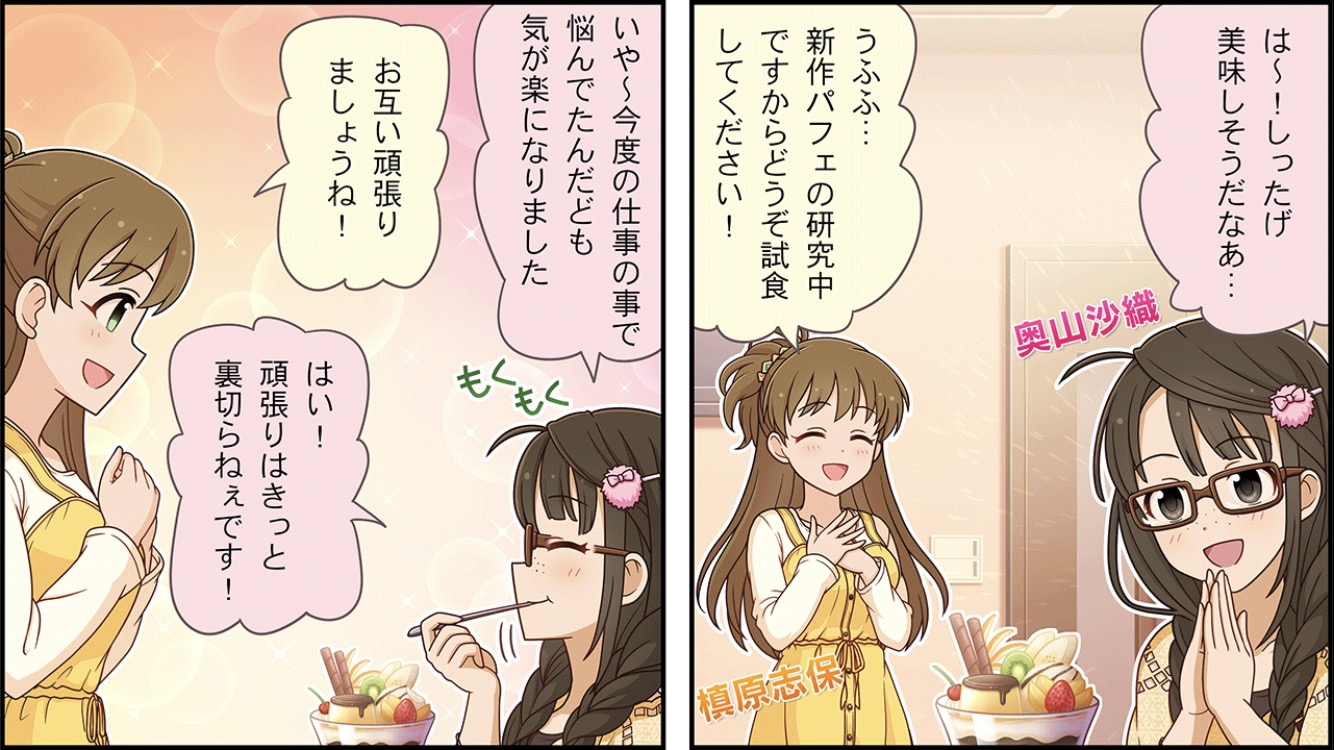 【デレステ】槙原志保、海老原菜帆と榊原里美と協力してとんでもねえパフェを開発する。「いっしょに食べましょう!」アカン