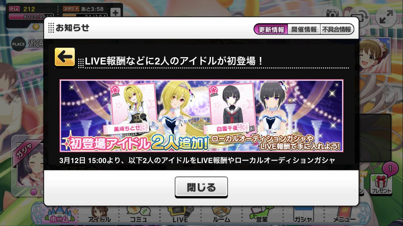 【デレステ】LIVE報酬などに黒埼ちとせ、白雪千夜の2名が登場するようになったぞ!