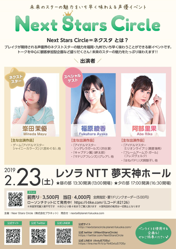 アイマス声優3名(峯田茉優、福原綾香、阿部里果)のイベントが福岡で開催(2月23日) 等(Vol.1452)