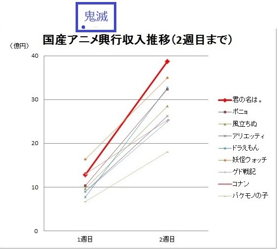 【画像】映画『鬼滅の刃』がどれだけ凄すぎるのか一目で分かるグラフがこちらwww