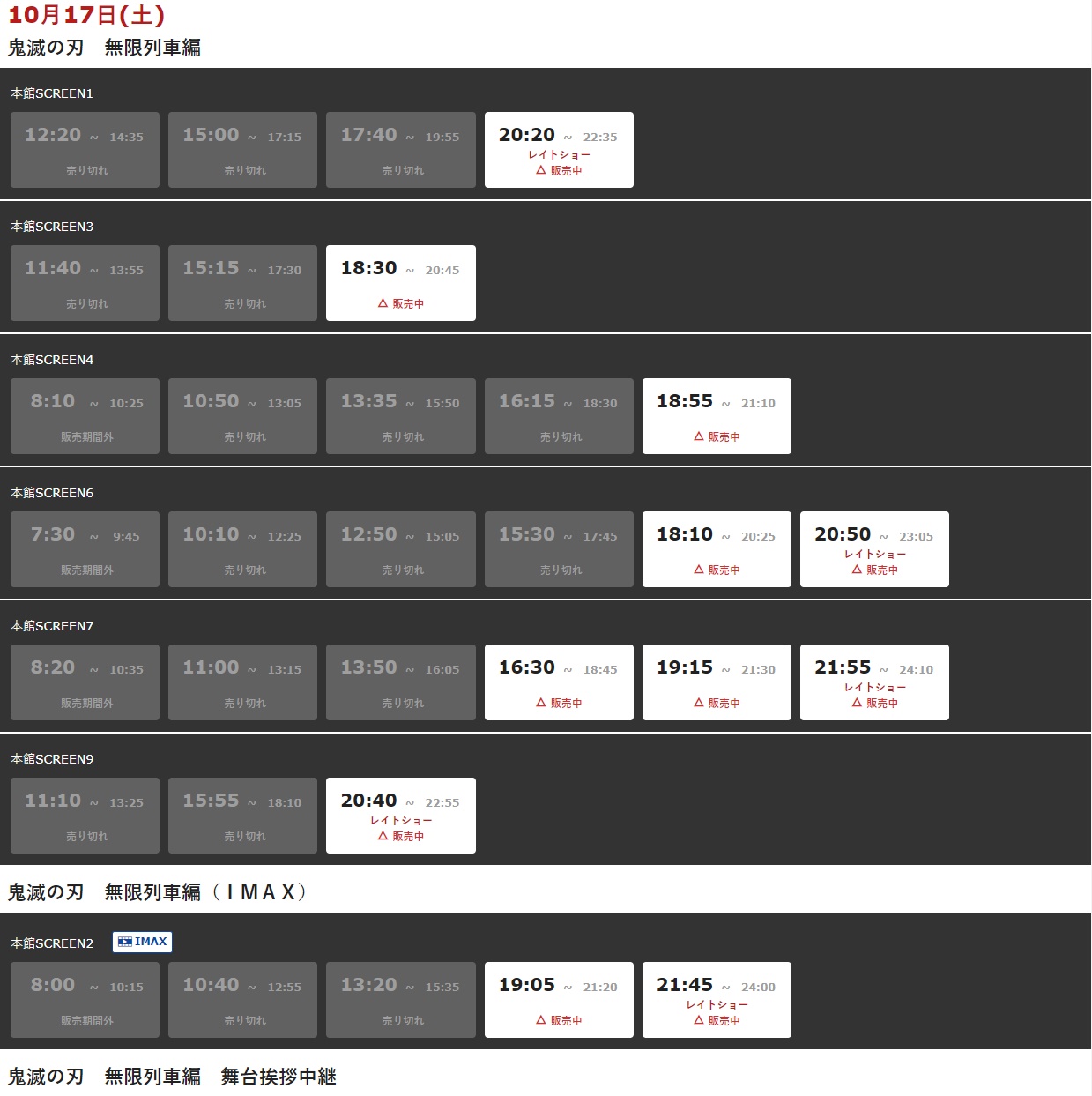 【画像】鬼滅の刃、初日よりもやばい!埋まらないレベルの席数なのに完売続出wwww