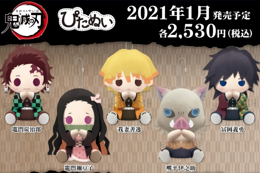 「ぴたぬい 鬼滅の刃」予約開始!ラインナップは炭治郎、禰豆子、善逸、伊之助、義勇の全5種