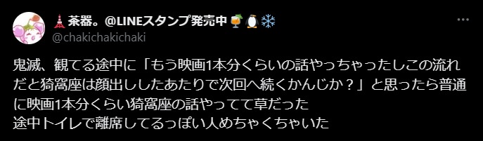 【悲報】映画「鬼滅の刃」、上映時間が長すぎてトイレ離席する人が多発してしまうwwww