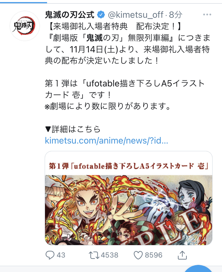 【ガチで300億へ】『劇場版 鬼滅の刃』来場者特典第1弾発表!! 全部で第4弾まであるぞおおおおおおおお