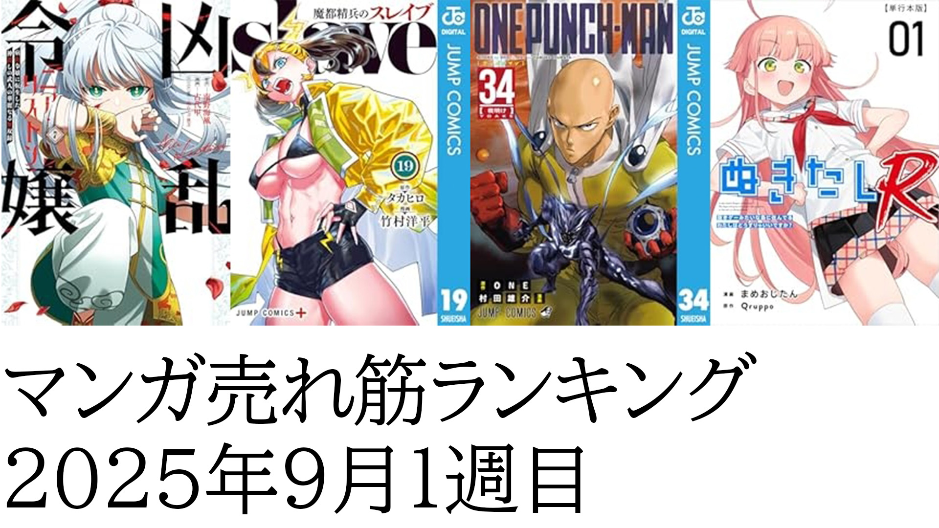 【マンガランキング】9月1週目の人気、「ぬきたしR」「ワンパンマン」「魔都精兵のスレイブ」そして…