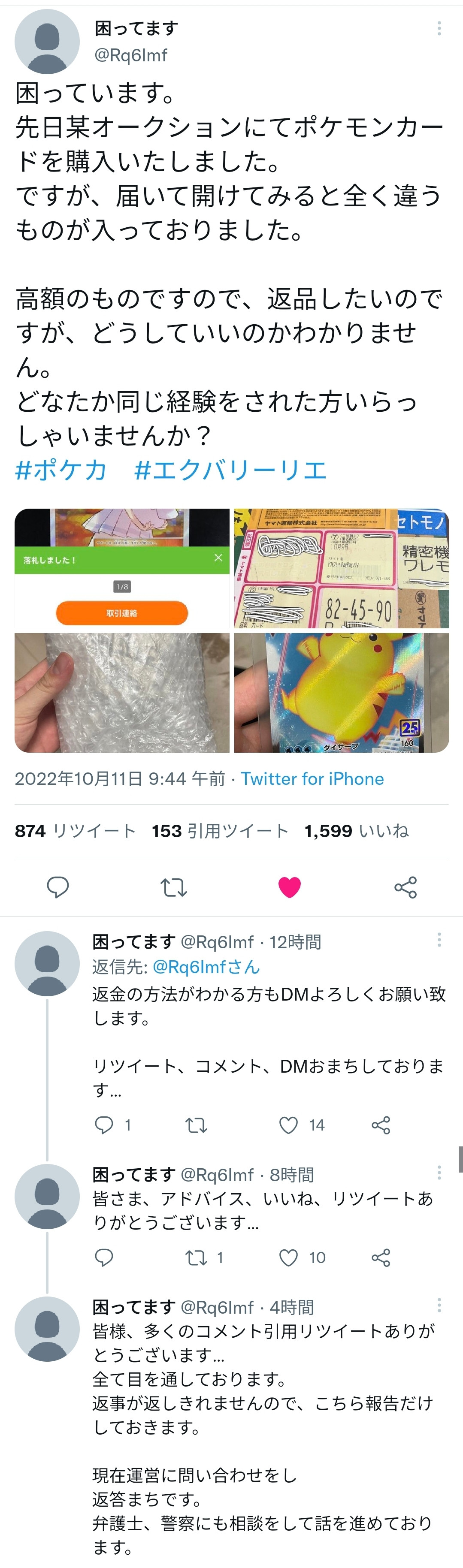 【悲報】オタク「助けてっ!ヤフオクで250万円のポケモンカード買ったら全然別のカードが入ってたの…」