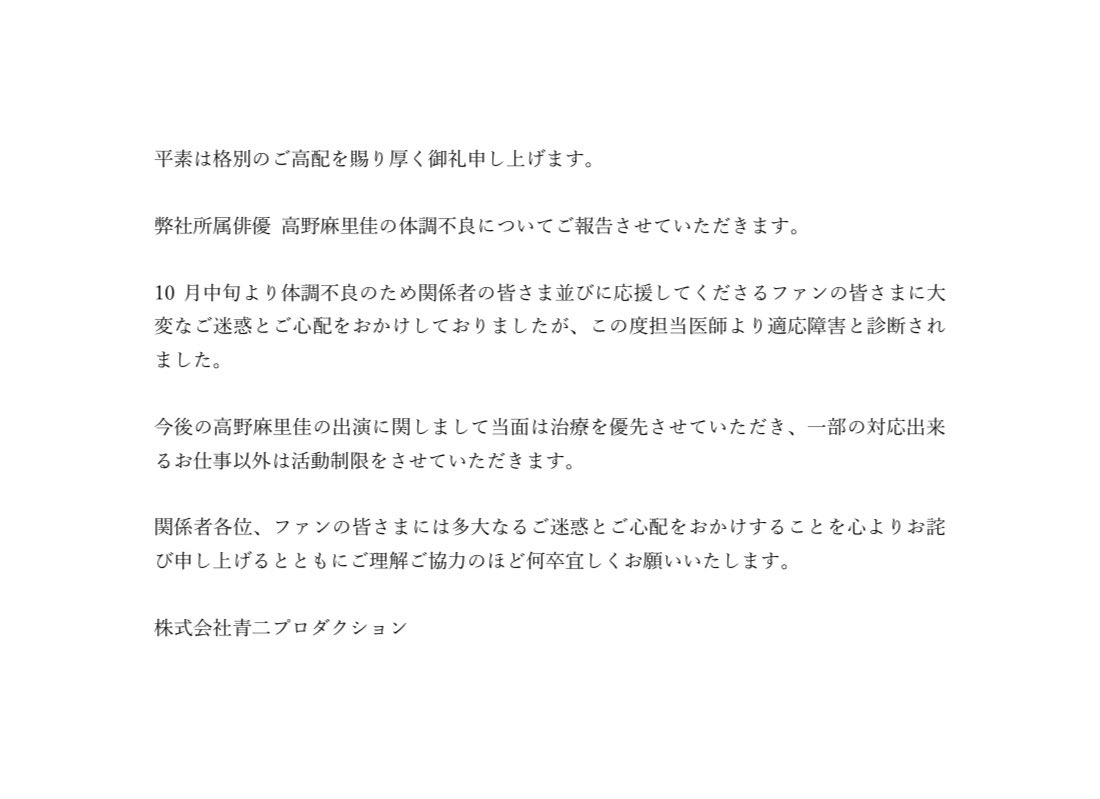 【速報】ウマ娘声優の高野麻里佳さん、適応障害で活動制限へ…