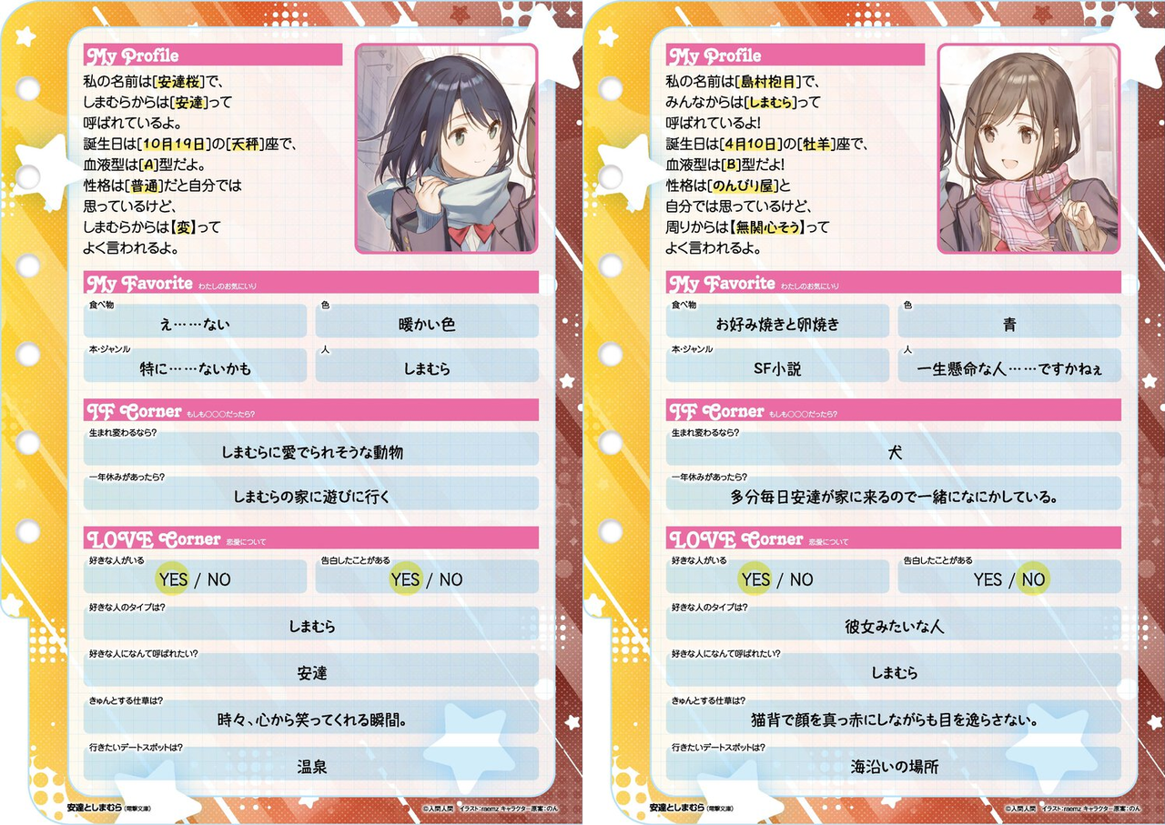 【百合】「ガールミーツガールノベルフェア」にて【安達としまむら】などのプロフィール帳が公開