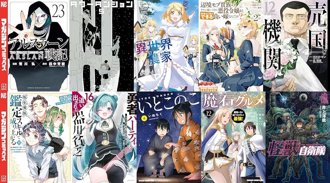 マンガ新刊:9月9日は「アルスラーン戦記 23」「異世界のんびり農家 15」「転生貴族、鑑定スキルで成り上がる 19」「勇者パーティを追い出された器用貧乏 16」「いとこのこ 4」など