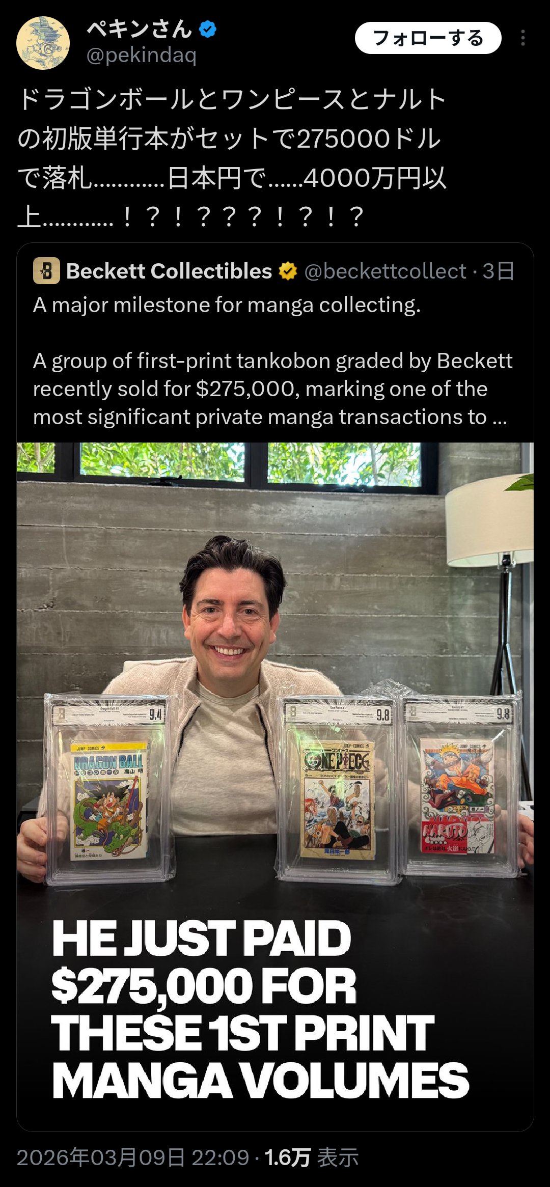 【悲報】ドラゴボとNARUTOとワンピースの第1巻(初版版)、とんでもない値段が付くwwww