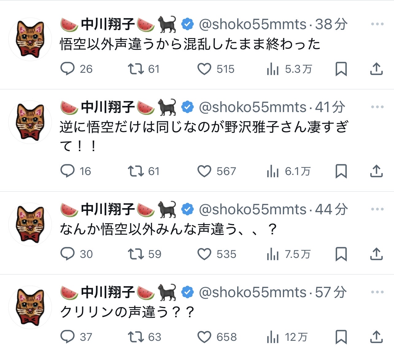 【悲報】中川翔子さん、ドラゴボDAIMAの声優変更に混乱してしまうwwww