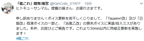 【艦これ】一部艦娘のボイスの実装不具合修正更新完了!