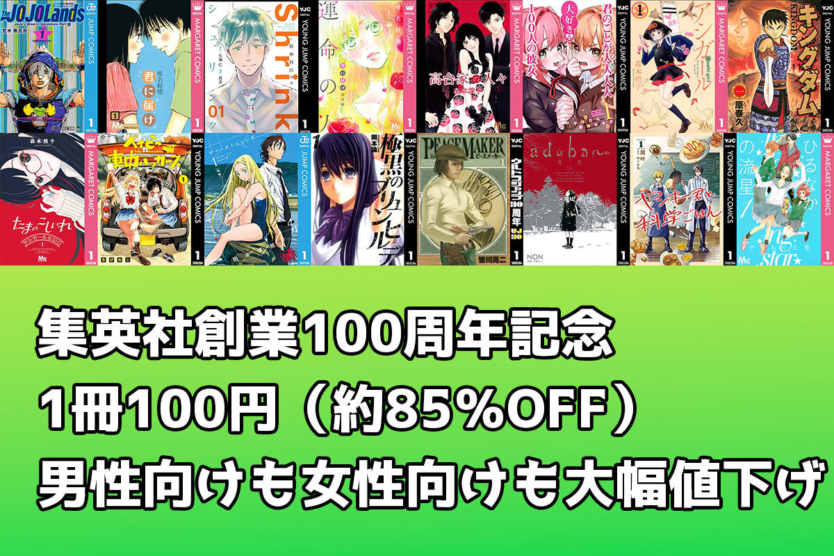 集英社創業100周年!Kindleでヤンジャン&マーガレットコミックスの名作が1冊100円(約85%OFF) 「君に届け」「キングダム」など【60冊まとめ】