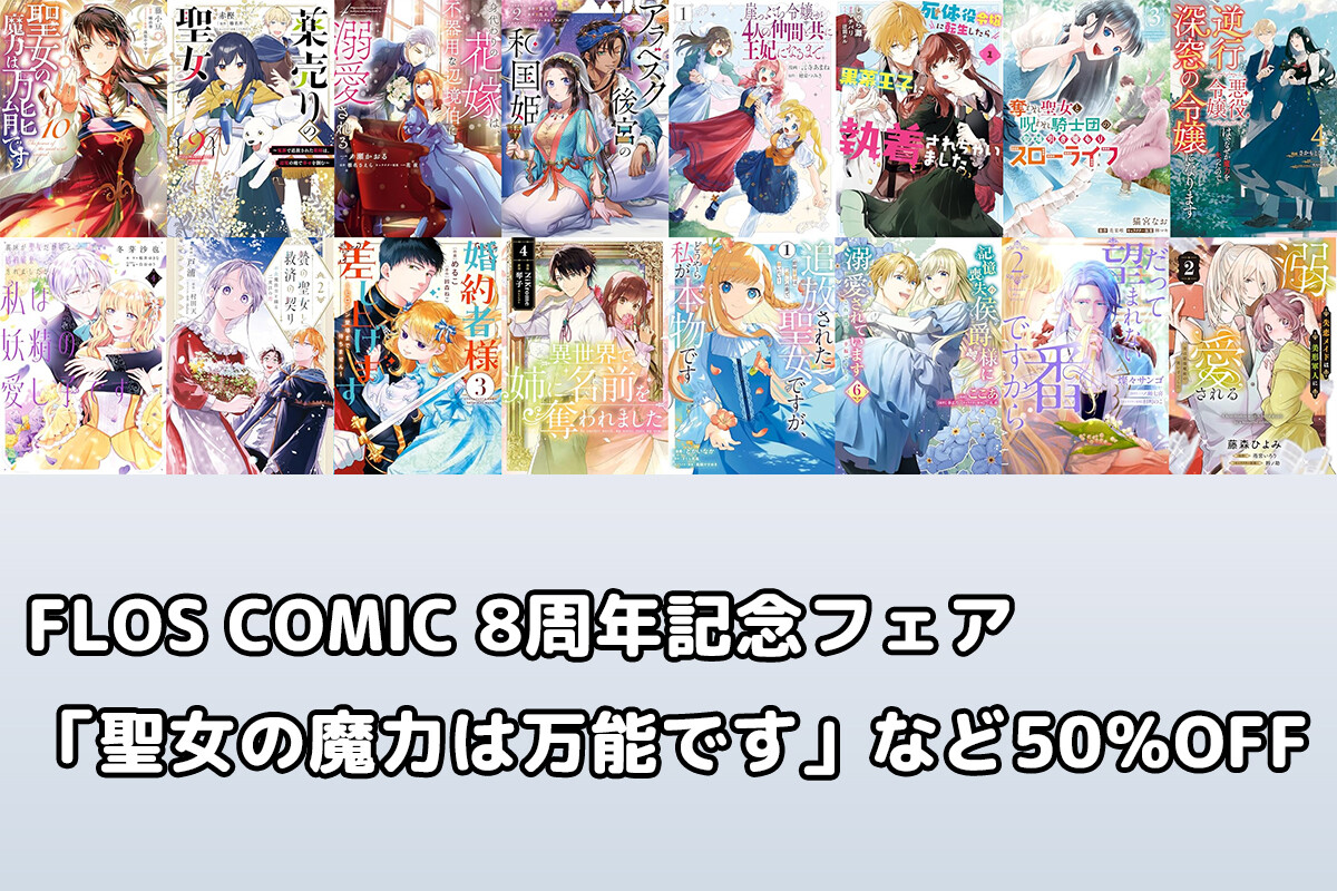 「聖女の魔力は万能です」「薬売りの聖女」など50%OFF!KindleでKADOKAWA FLOS COMIC 8周年記念フェア 約50作品まとめ(2/18まで)