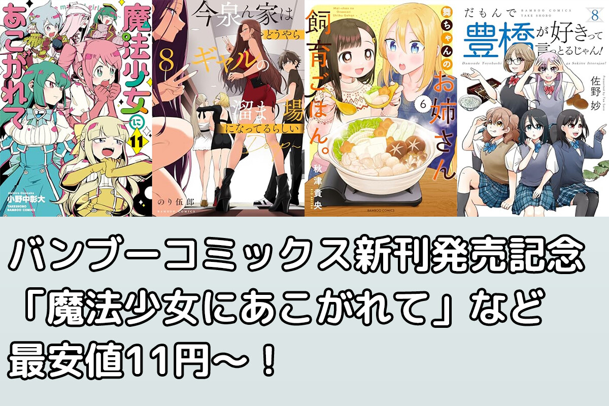 【11円~】「魔法少女にあこがれて」ほかバンブーコミックス新刊配信記念で11円~の大幅値下げ!「今泉ん家はどうやらギャルの溜まり場になってるらしい」なども(3/2まで)