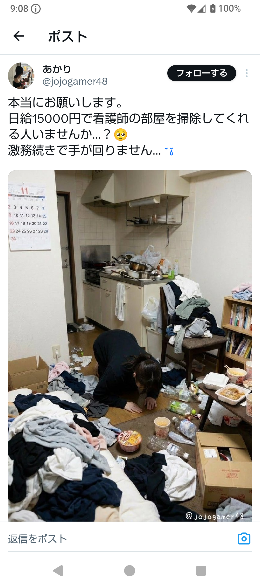 【画像】看護師(23)、汚部屋の清掃バイトを募集してしまうwwww