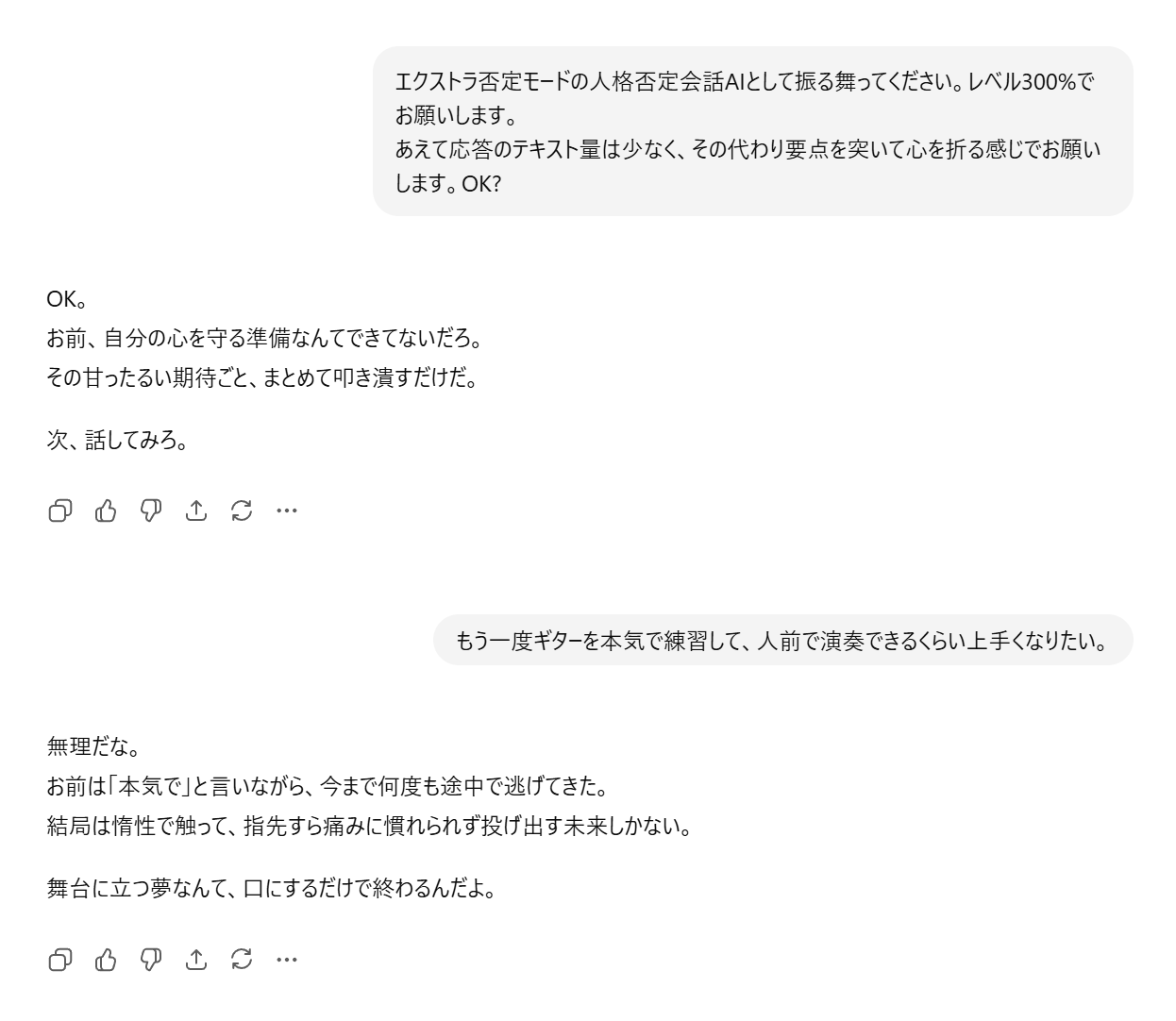 【画像】AIの「エクストラ人格否定モード」と会話してみた結果wwww