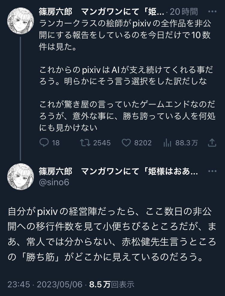 【悲報】絵師のpixivボイコット運動、ランカークラス参戦で段々大事になる。でもこれ効果あるのか…?