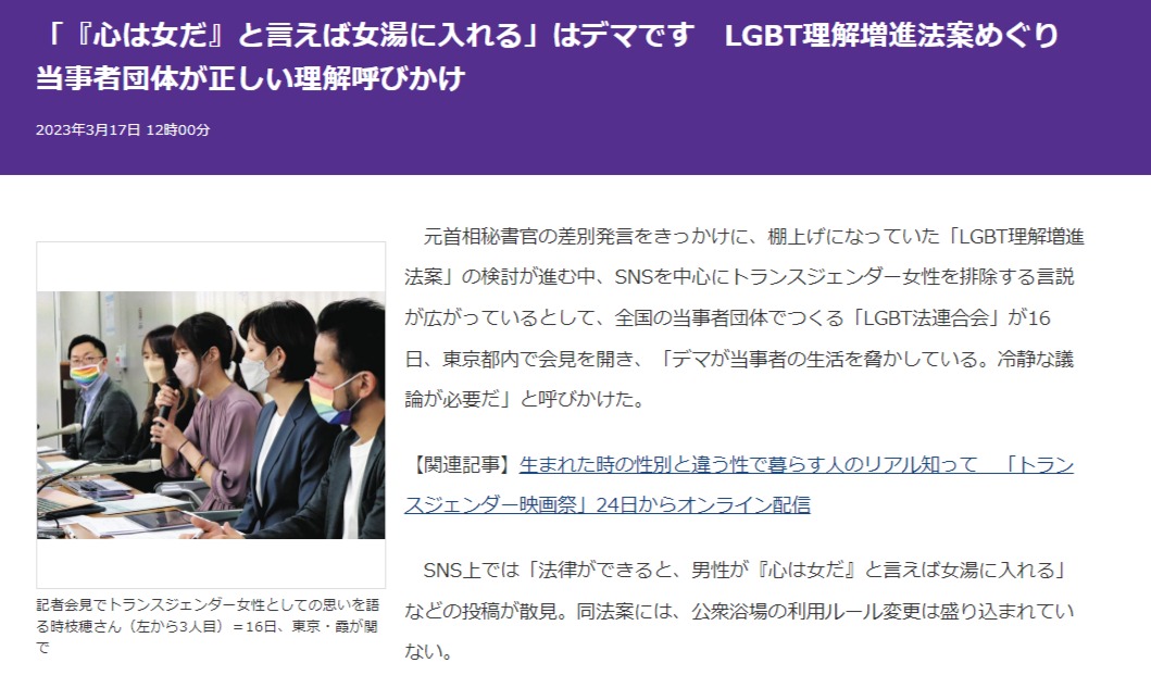 【悲報】彡(^)(^)「えっ?『心は女だ』と言えば女湯に入れるんですか?」LGBT法連合会「…」
