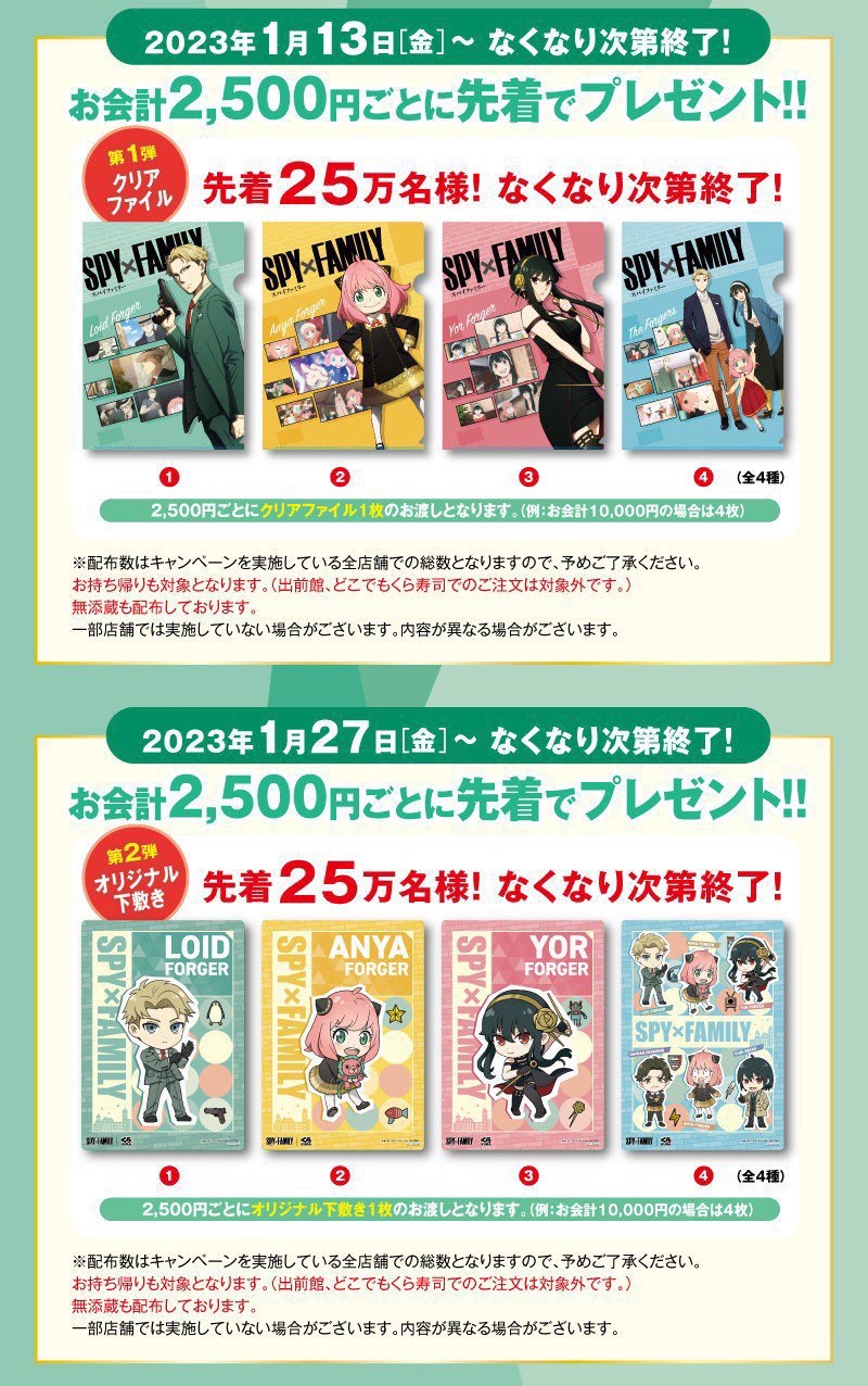 【悲報】くら寿司SPY×FAMILYコラボ、弱者男性は1人で2500円分食べないとグッズが貰えないwwww