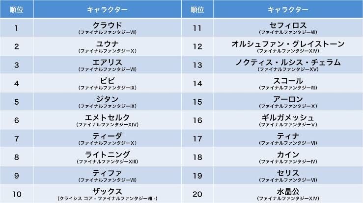 【画像】FF総選挙、謎のキャラが上位にランクイン