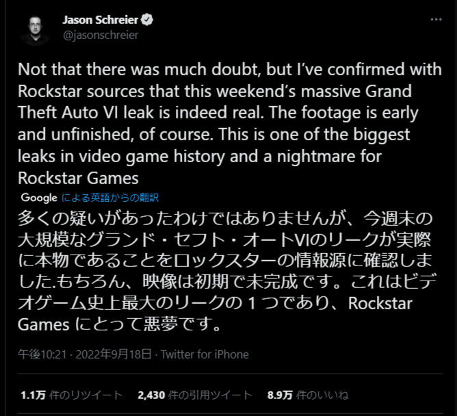 【悲報】有能ハッカーさん、GTA6のリーク動画拡散 → 『ゲーム史上最大のリーク』と言われてしまうwwww