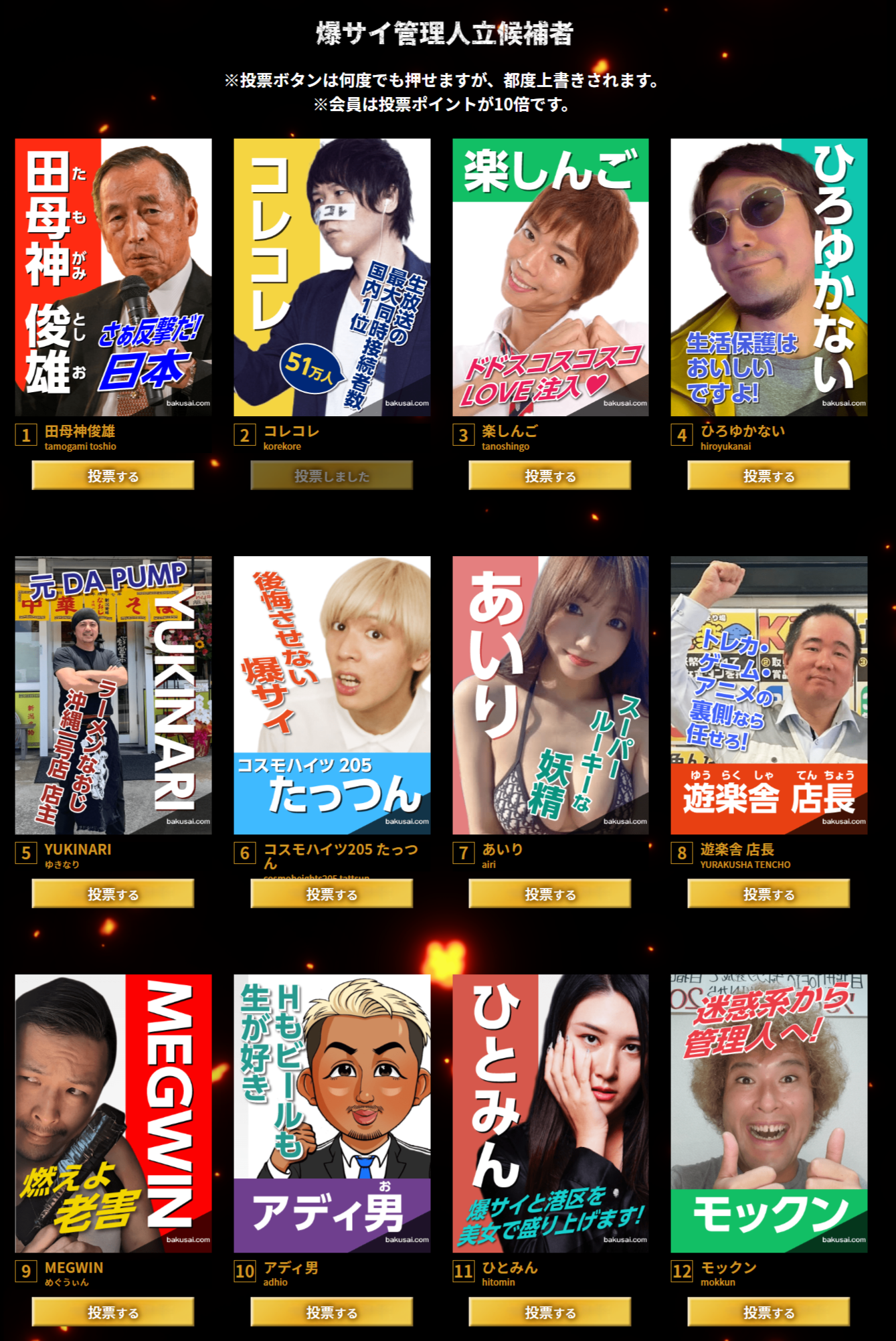 【画像】『時給10万円』の爆サイ管理人総選挙、立候補者の顔ぶれが濃すぎて草wwwww