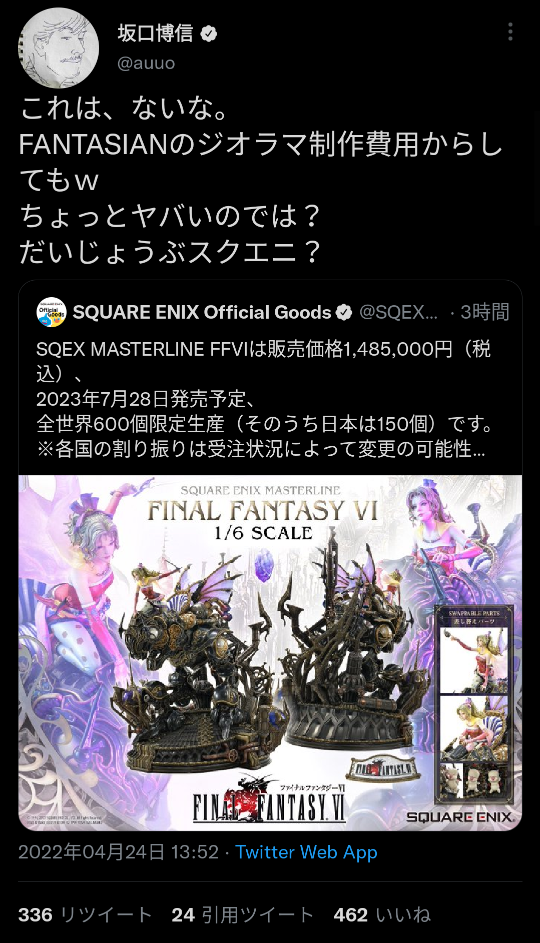 【画像】FFの生みの親の坂口さん、148万円フィギュアに「ちょっとヤバいのでは?」
