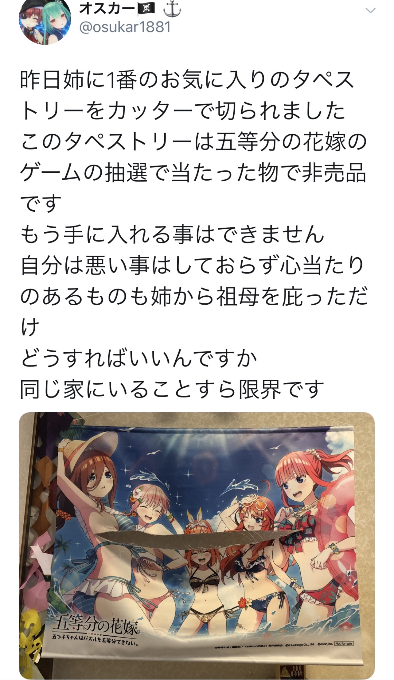 【悲報】萌え豚さん、大事なグッズを実の姉にカッターで切られてしまう・・・