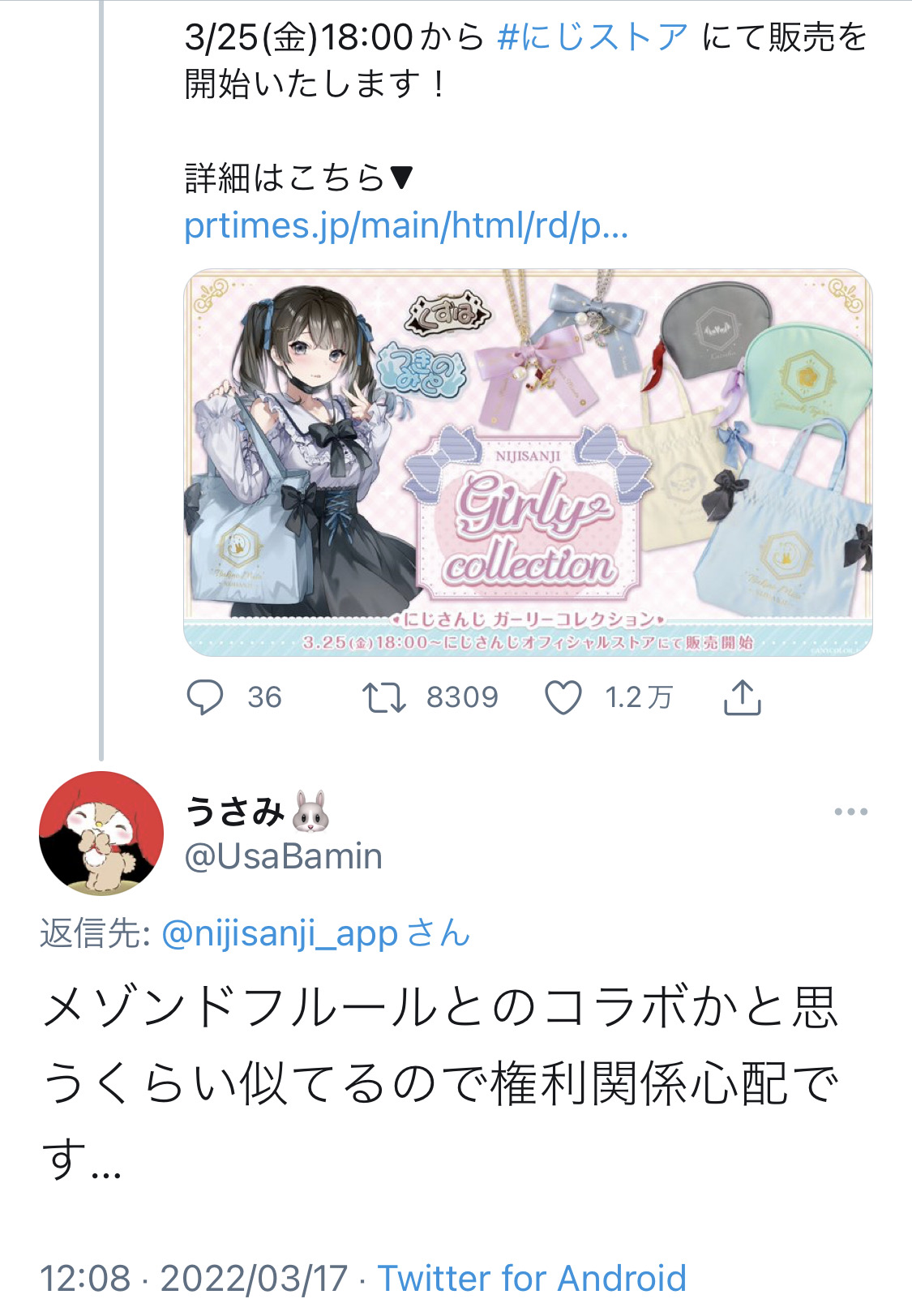 【悲報】にじさんじグッズの有名ブランドからのパクり問題、仲間のVtuberからもお気持ちを表明されるwwwwww