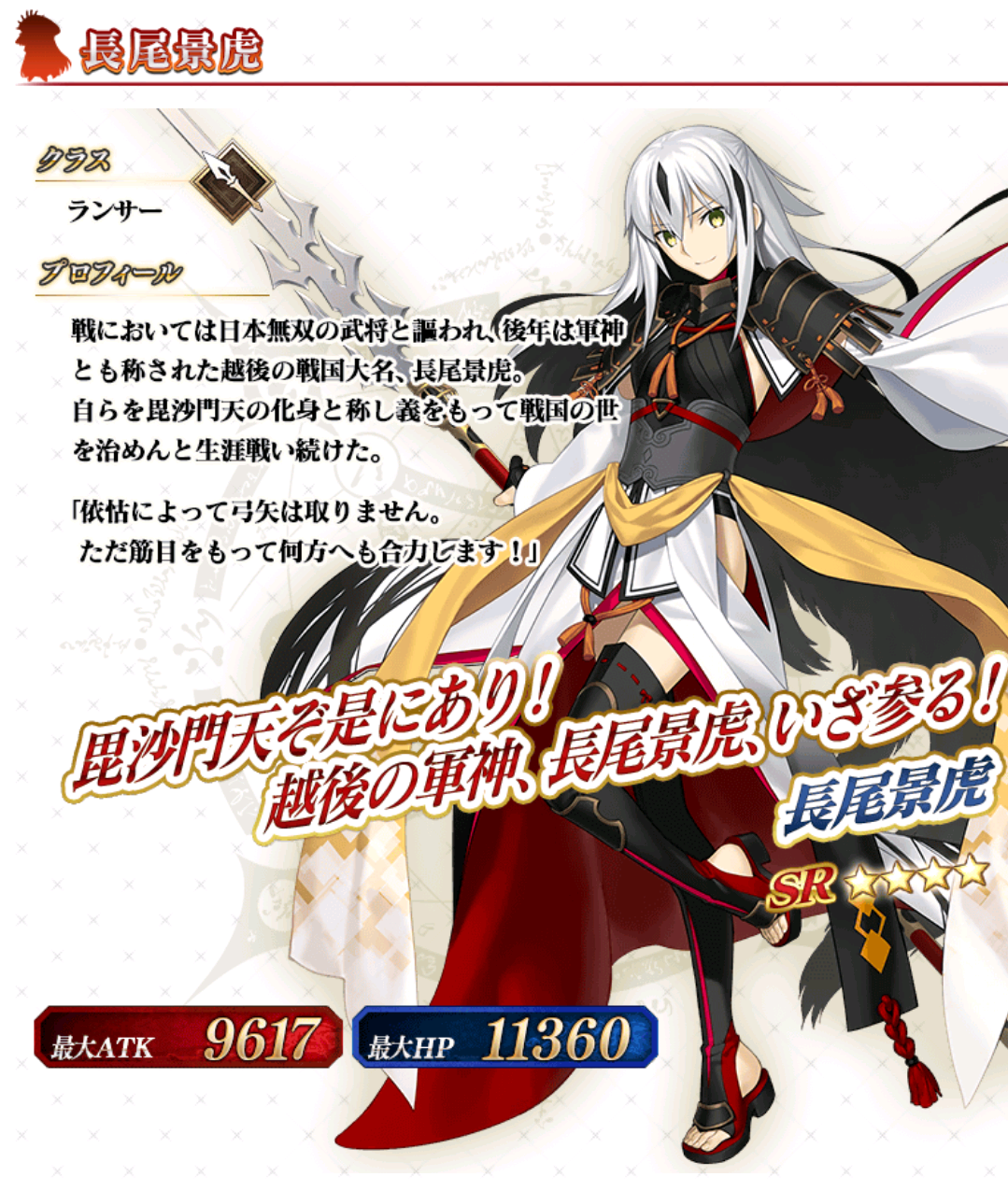 【FGO】長尾景虎は配布サーヴァント!ついに降臨した八華のランサーをご紹介