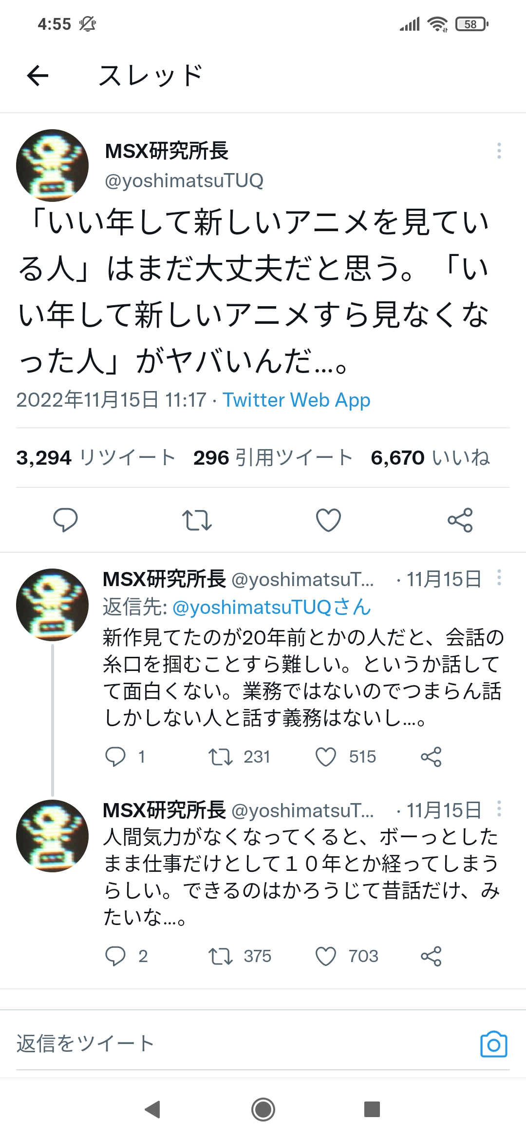 【画像】Twitter民「本当にヤバイのは“いい年して新作アニメすら見なくなった人”」