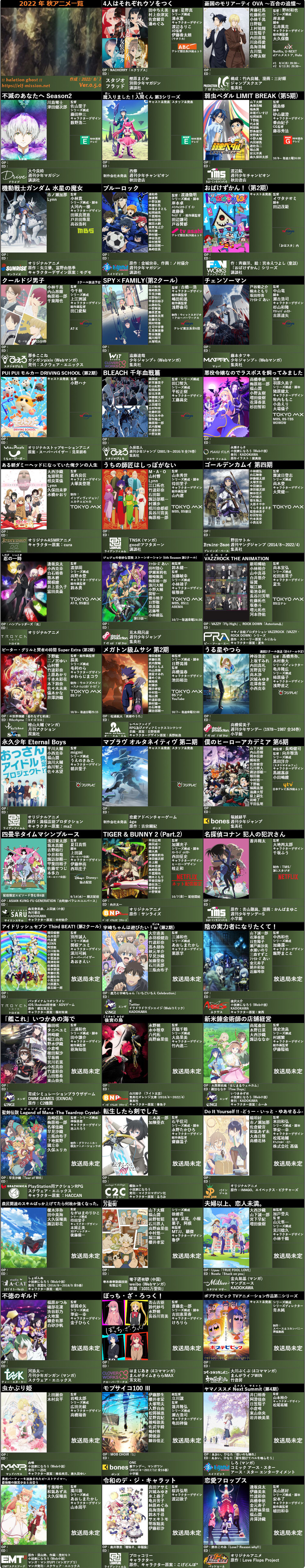 2022年秋アニメ一覧がヤバ過ぎるwwwwwwwwwwww