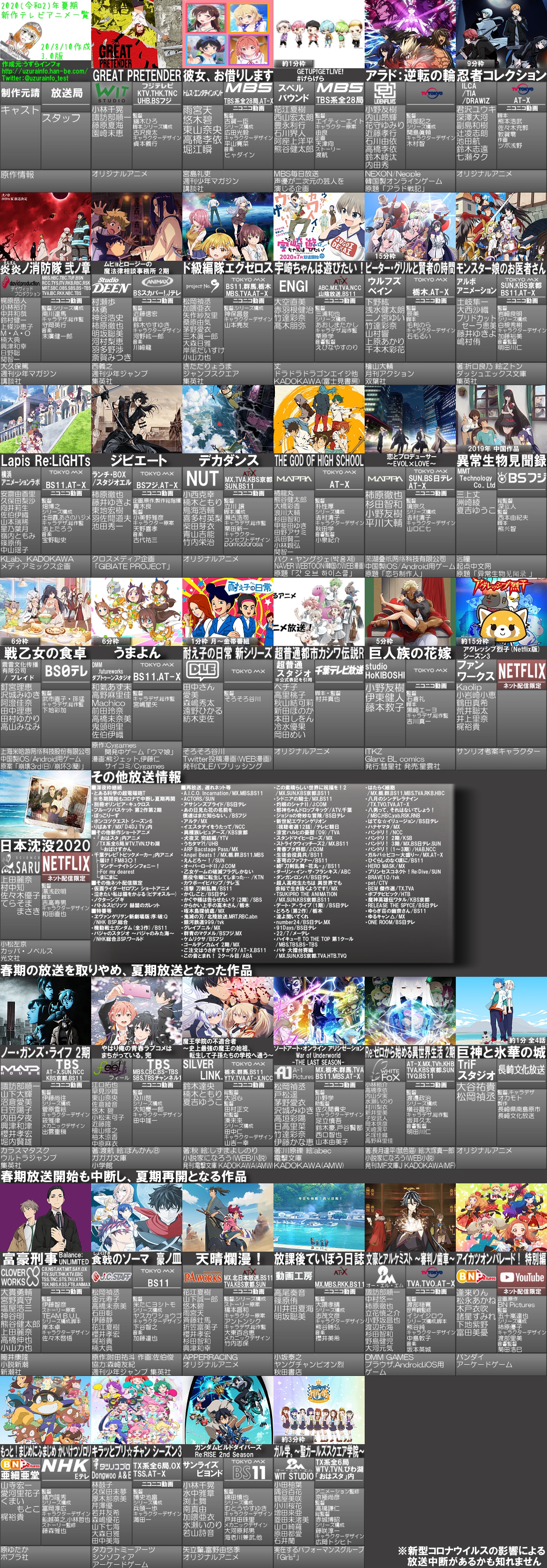 【悲報】来期アニメ一覧を作り続けた「うずらインフォ」、更新終了へ