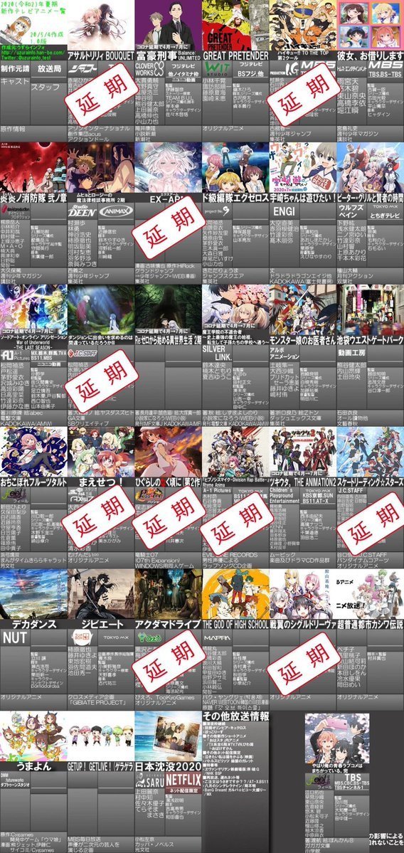 【画像】2020年夏アニメの延期する作品が多すぎるwwwwwwww