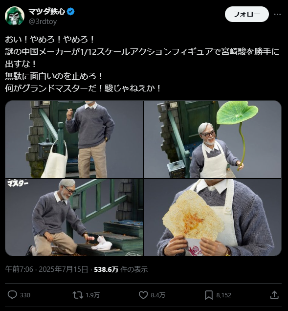 謎の中国メーカー、アクションフィギュア宮崎駿を販売してしまう