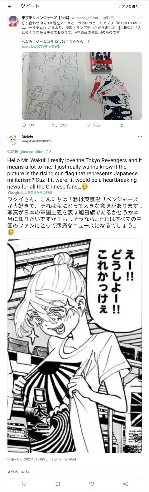【悲報】中国人、東京リベンジャーズにロックオン「これ旭日旗か?全中国人を敵に回すことになるよ?」