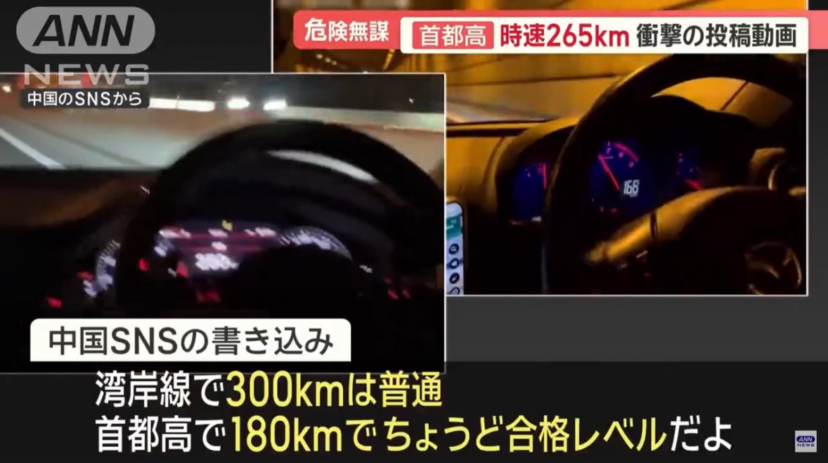 【悲報】中国人、首都高で265km/hで爆走する動画を投稿wwww