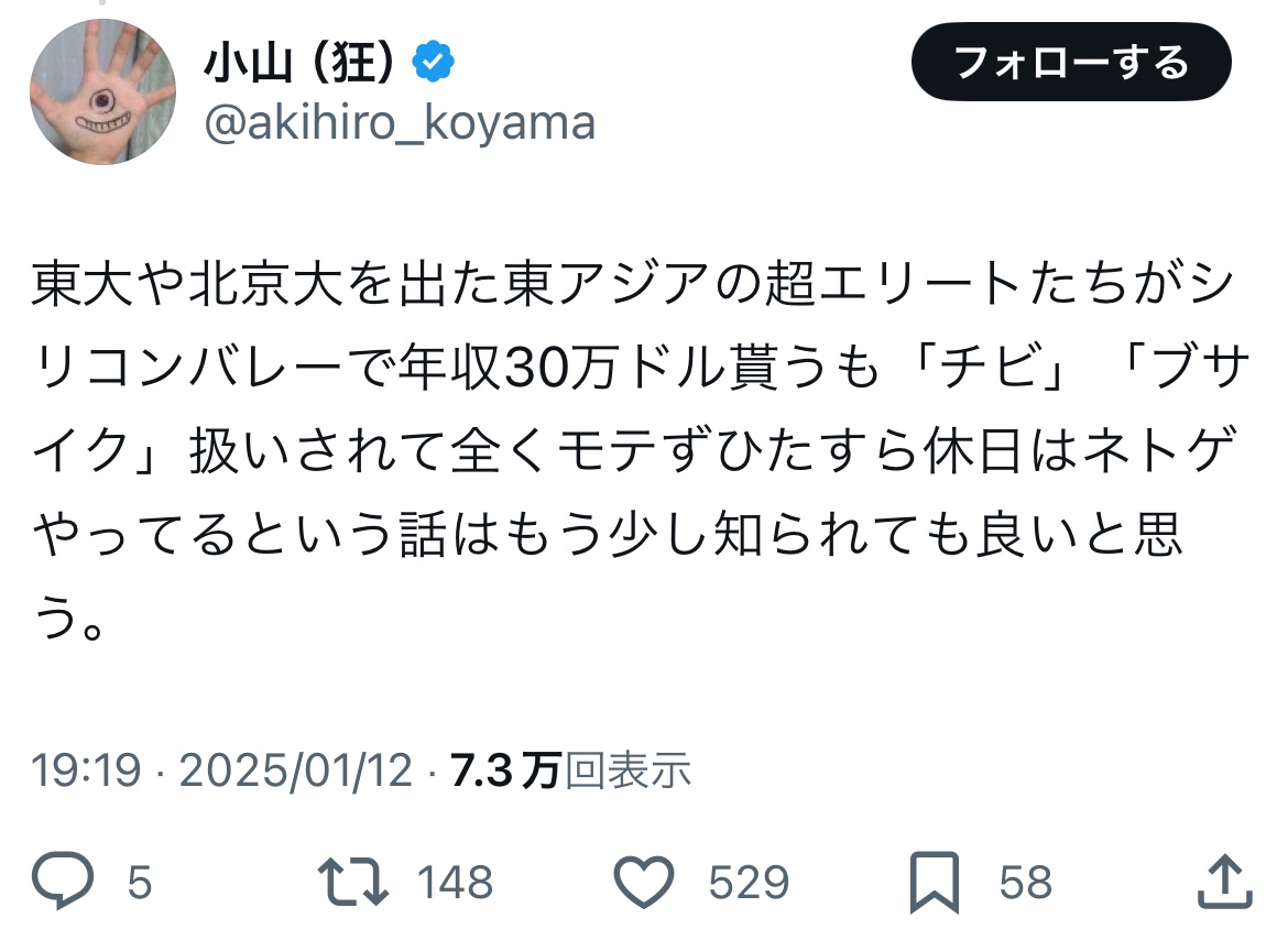 【悲報】識者「東大を出てアメリカに行くエリートの末路、これです」