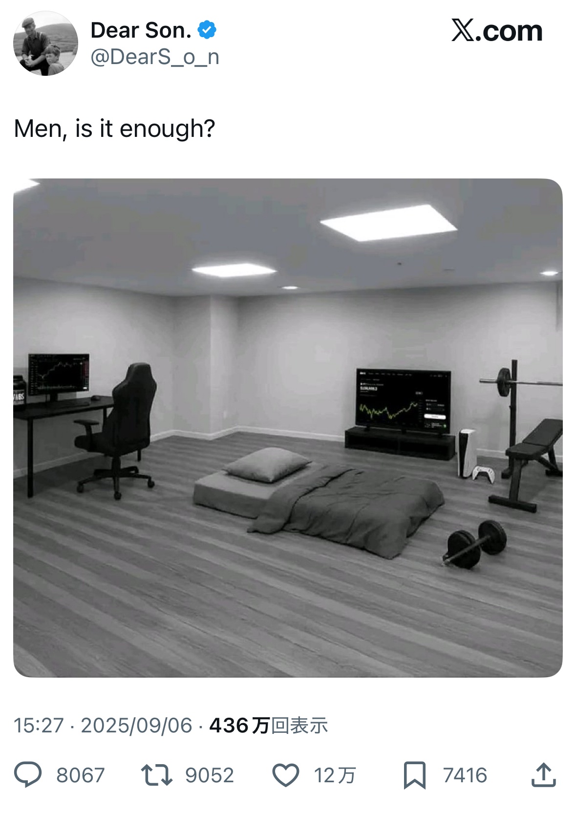【画像】外人「男たちよ…。お前らが必要な物はこれだけだろう?」(部屋パシャッ